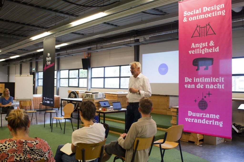 De Nacht Club Academie is dé plek voor wijkagenten, ambtenaren, bewoners en ontwerpers om samen vorm te geven aan ontmoeting in de wijk. Rond vragen als: hoe werk je samen aan fijne, veilige en vertrouwde wijken? Welke handvatten biedt social design, en welke inspiratie biedt de nacht bij het creëren van openhartige en gelijkwaardige ontmoeting?