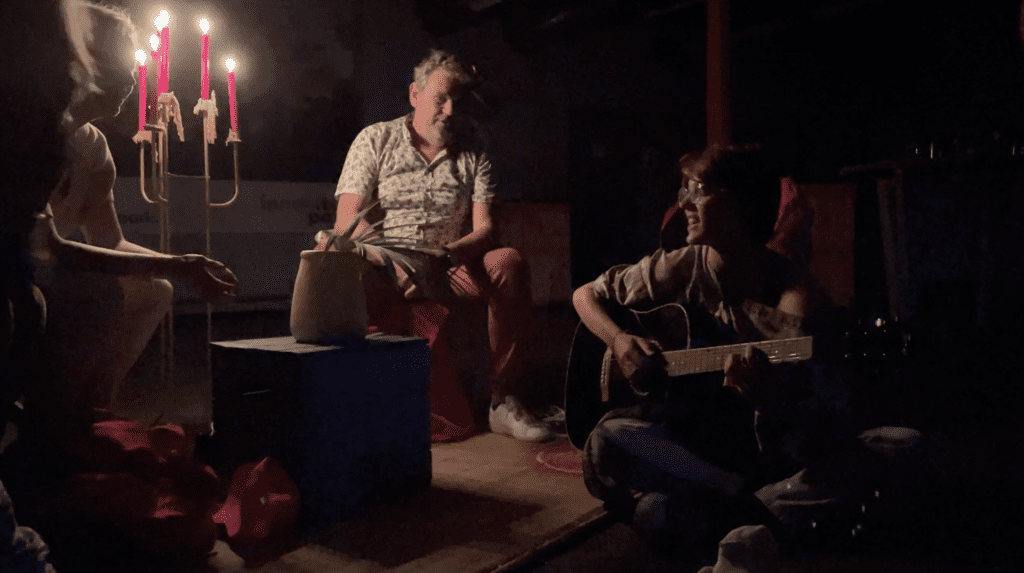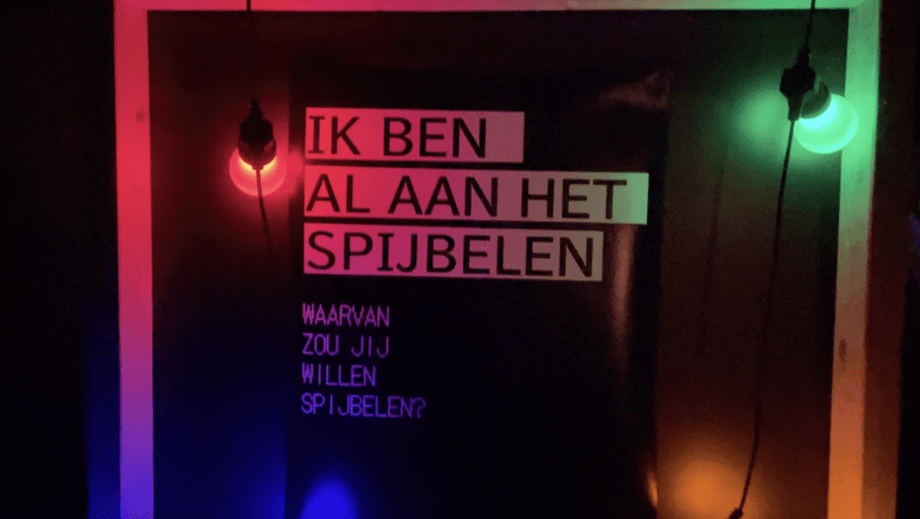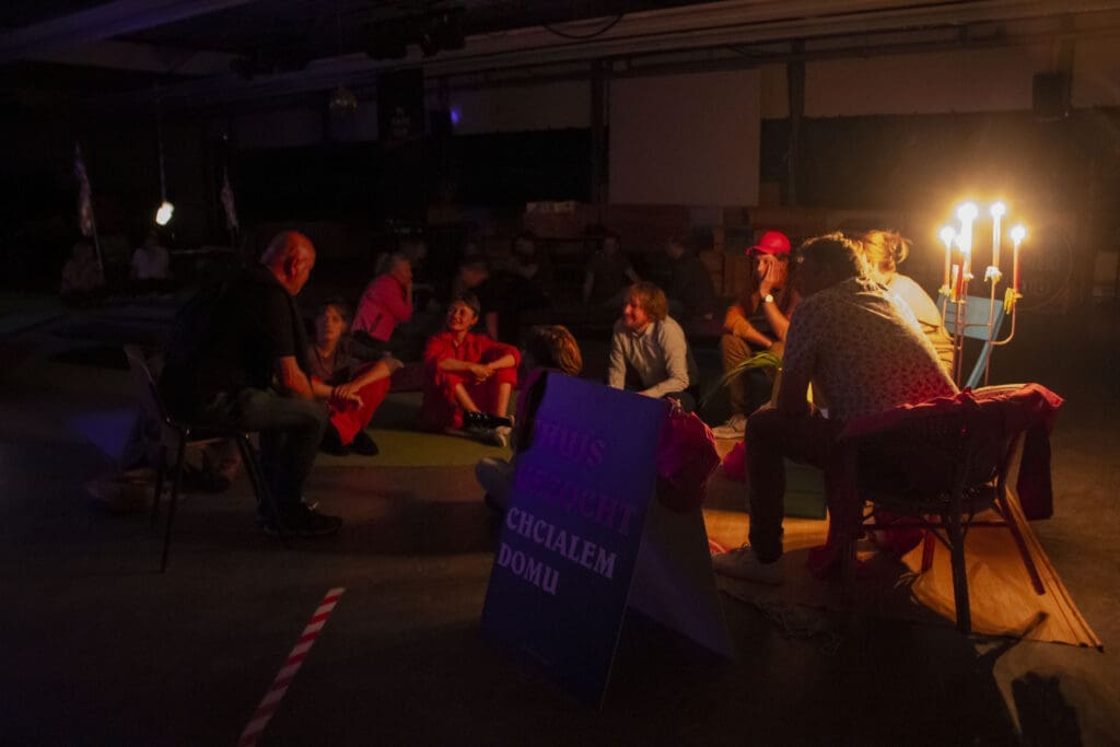 In de avond creëerden we samen een klein stukje nacht, om op fluistertoon te praten over wat we tot nu toe hebben meegemaakt, samen met gasten uit Roosendaal. Openhartige gesprekken ontstonden, bijvoorbeeld over hoe lastig (en leuk) het kan zijn om tussen twee werelden te zitten.