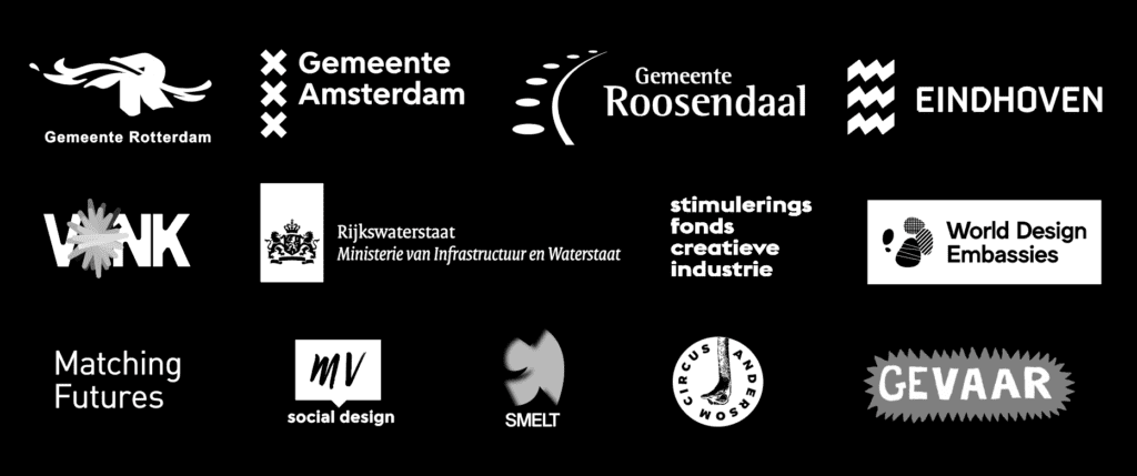 Relaties met organisaties Gemeente Rotterdam, Gemeente Amsterdam, Gemeente Roosendaal, Gemeente Eindhoven, innovatiecentrum VONK Rotterdam, World design Embassies Embassy of Safety en What if lab, Willem de Kooning Academie, TU Delft, Stimuleringsfonds Creatieve Industrie, PONT (Publieke Ontwerppraktijk), Samen Nieuw-West, Rijkswaterstaat en Erasmus Universiteit GOVLAB.