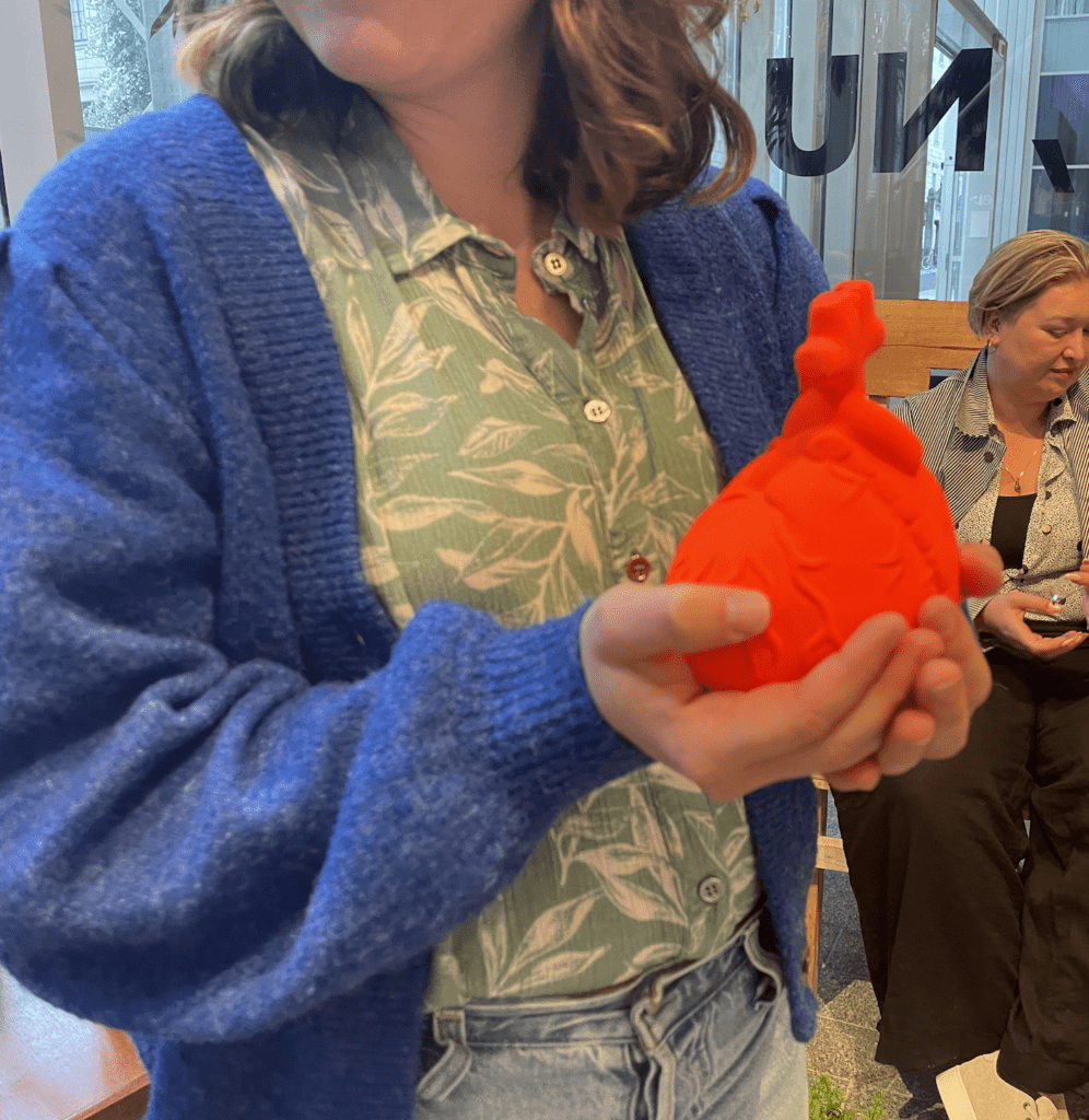 Hoe doe je zoiets eigenlijk? Speculeren? Jaap en Marjolein van De Nacht Club namen de groep mee naar MUTONO, het Museum voor Toekomstige Nostalgie. We kozen objecten die belangrijk zijn voor representatie in het jaar 2025 en waar we mogelijk in 2047 met weemoed aan terugdenken. Zoals het stempotlood (want ja stemmen we nog wel in de toekomst?), de kroon (de monarchie is afgeschaft!) en een bakfiets voor gesprekken met burgers (aan het eigen succes ten onder gegaan?). We beginnen langzaam te wennen aan het idee om over de toekomst te speculeren. Een creatief proces waarbij we zo kaderloos mogelijk ons probeerden voor te stellen hoe een toekomst er uit kan zien. Terwijl iedereen druk ideeën voorstelde over mogelijke toekomsten, was kunstenaar Victor Engbers op de achtergrond hard aan het werk om de soms abstracte, vage of juiste hele heldere en concrete toekomstbeelden van deelnemers te vertalen naar objecten voor het museum.