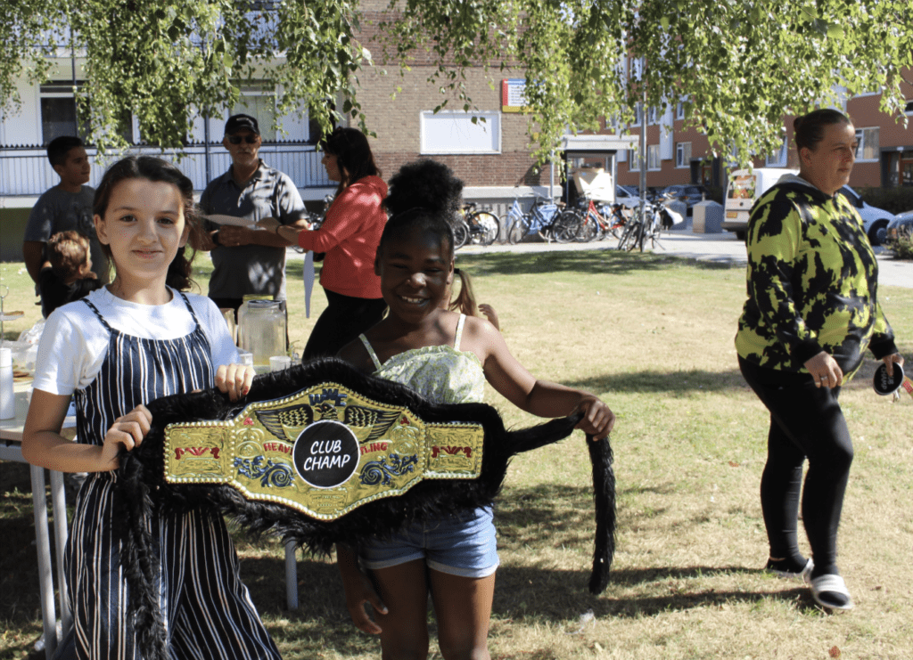 De Lampreibuurt doet mee aan de Nacht Club Academie. Dat betekent dat we samen zoeken naar nieuwe relaties, meer vertrouwen en een prettiger gevoel in de buurt. Het ontwerpteam ziet de harde en de zachte kant van de wijk. Die laten ze samen komen tijdens een eerste Club Champ in september, buiten op het gras tussen de flats. Het thema is ‘furry fights’. We willen zachte bokszakken ophangen, en meteen staan de dames van de Buurtstudio klaar om urenlang te helpen naaien. Het wordt een gezellige boel tussen de flats, met als hoogtepunt boksles van lokale legende ome Jan. Na afloop helpen kinderen enthousiast mee opruimen. Wat blijkt: een bewoner geeft zelf boksles: de volgende keer moet je mij bellen hè. De hulpvaardigheid van de mensen valt het team op. Daarop gaan ze door.