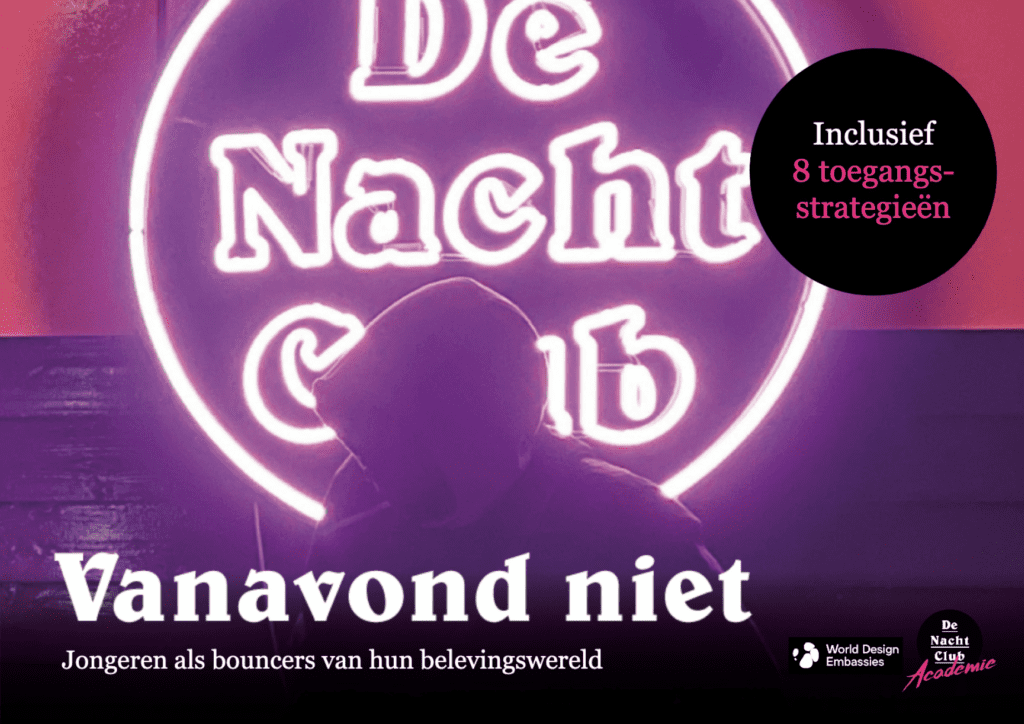 ‘Vanavond niet’ is een ontwerponderzoek naar de manieren waarop jongeren zichzelf beschermen en afschermen van anderen. Hoe maak je keuzes over wie je wel en niet binnen laat? Dat soort keuzes kunnen heel direct raken aan het onderwerp Jonge Aanwas, de criminalisering van kwetsbare jongeren. Maar ook aan de rol en positie die professionals kunnen spelen. ‘Vanavond niet’ was in oktober 2022 een immersieve ervaring in de Embassy of Safety op de Dutch Design Week. In deze rapportage delen we onze bevindingen in de hoop lezers te inspireren verder te gaan met door ons gevonden inzichten en perspectief.