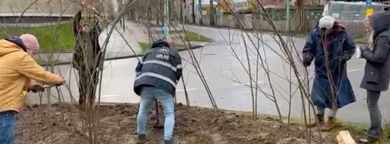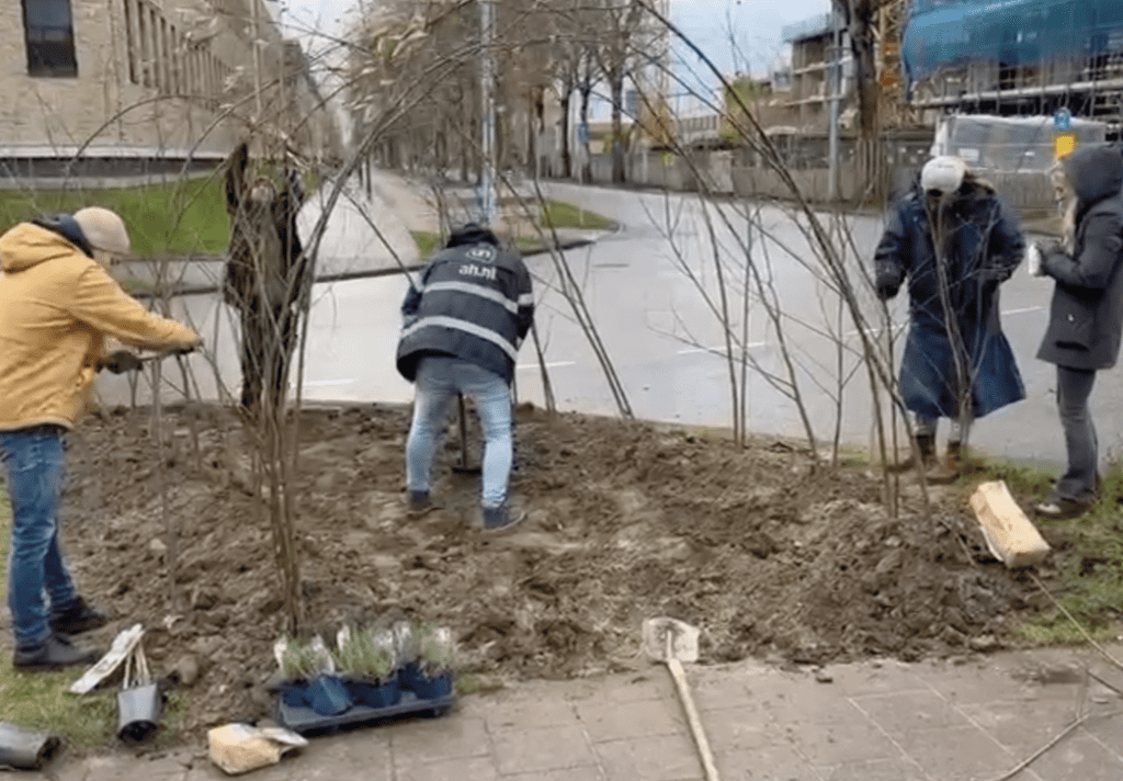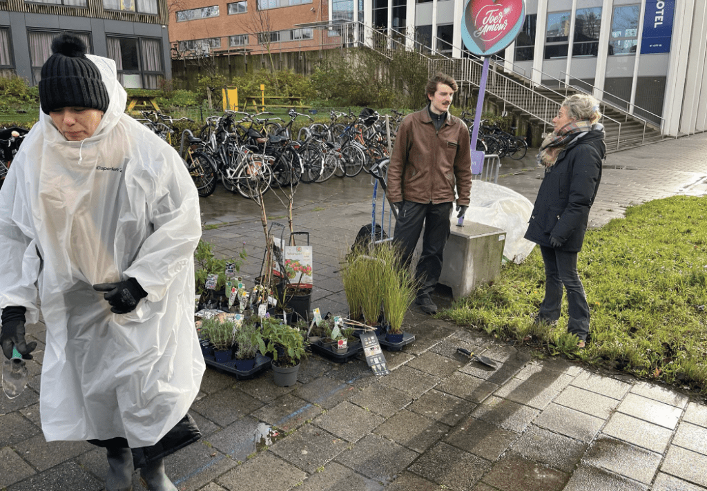 Gemeente Amsterdam Saliha Yurtay, Marleen Klein Klimaatkunstenaar Theo Rekelhof Samen met o.a. bewoner Stan Joosten